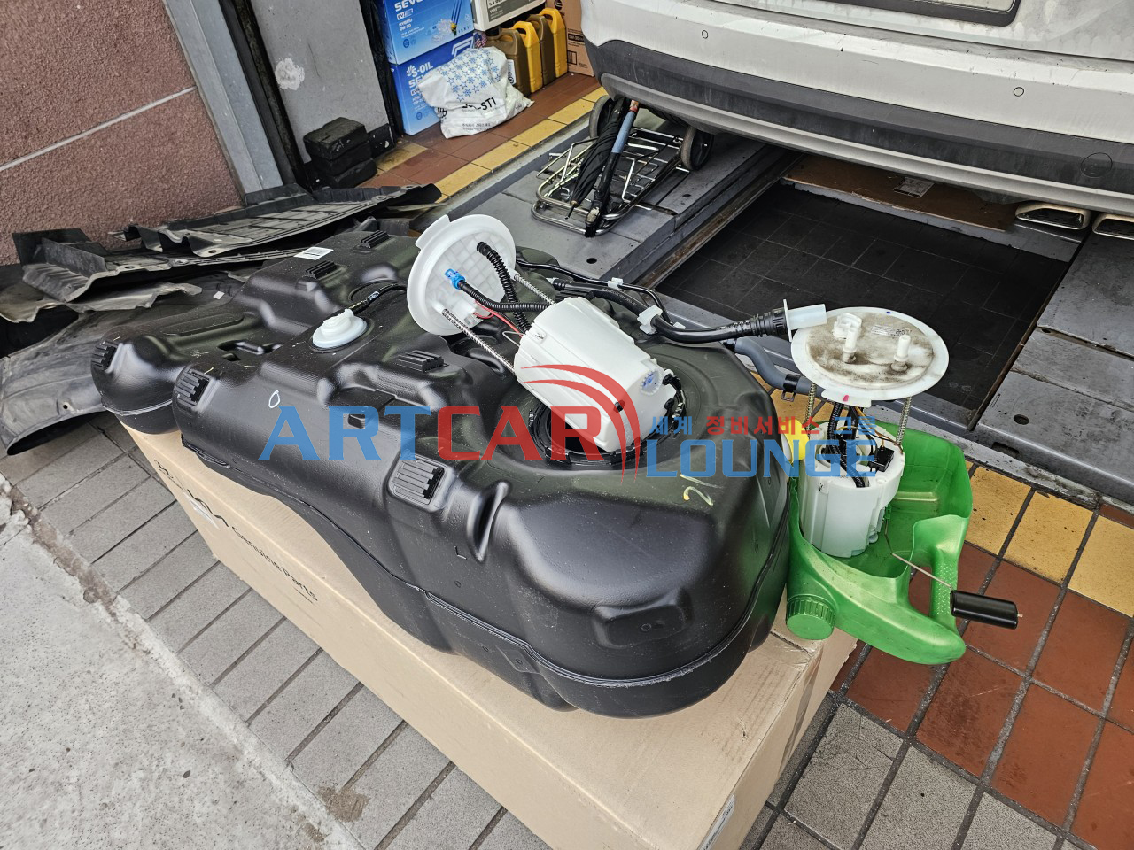 조치 : 연료계통 모두 교환(연료탱크, 연료모터, 고압펌프, 연료필터, 인젝터, 커먼레일,펑션호스, 리턴호스, 연료라인 세척 등), 흡기 크리닝, EGR밸브 교환, 크랭크앵글센서 교환, 타이밍벨트셋트, 통합 유량제어 밸브, 타이어 4개, 3D 휠얼라인먼트 등... 교환