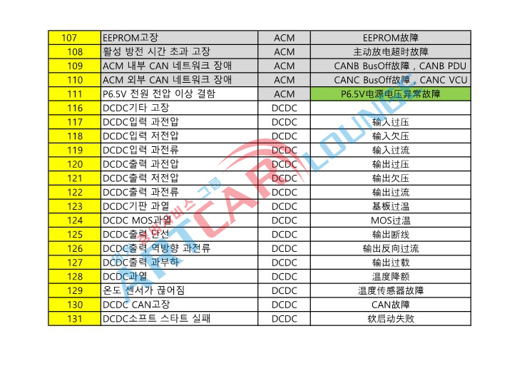 전기차 젤라 결함 코드 리스트